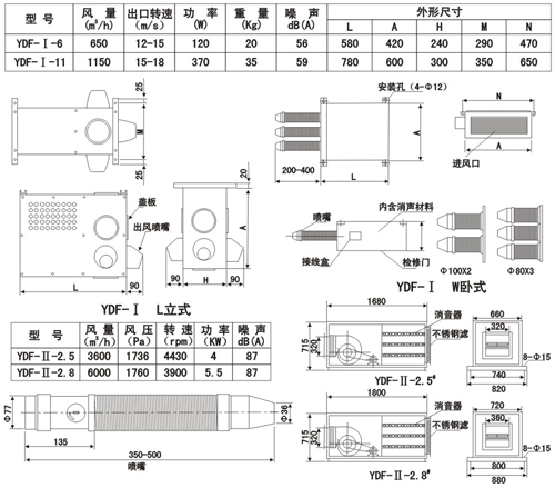 YDF-II型誘導風機為柜式箱體結構,臥式安裝,皮帶傳動,配用三相電機。