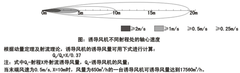 誘導風機是無風道射流誘尋通風系統的一部分,它與送風風機,排風風機組成整個系統。其原理是由以系統設計,適當布置的多臺誘導風機噴嘴射出的定向高速氣流,誘導室外的新鮮空氣或經過處理的空氣,在無風管的條件下將其送到所要求的區域,實現******的室內氣流組織,以達到高效經濟的通風換氣效果。使用無管道射流誘導通風系統時,可省去設計,制造,安裝風管及其它配套工程方面的費用,這部分費用比使用的誘導風機機組昂貴的多,而且以整個層面為通風風道,送風風機,排風風機所需要風壓比使用管道時小的多,這樣就可以選用大風量較低風壓的風機,使所需功率降低,大幅地降低了運行成本和投資費用。當送排風機停止運轉時,誘導風機仍可運轉,起到局部通風換氣的作用。